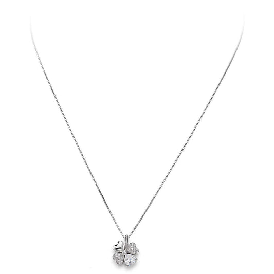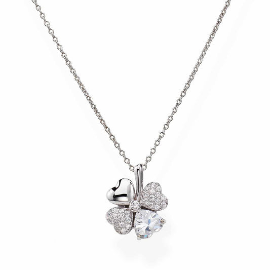 RHODIUM FOUR-HEART NECKLACE AND WHITE ZIRCONIA