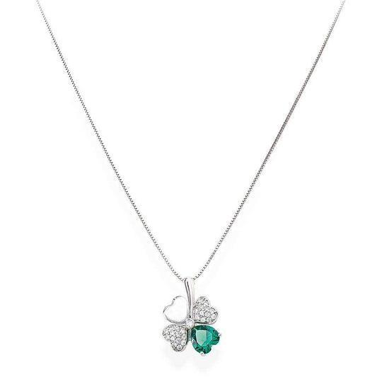 RHODIUM FOUR-HEART NECKLACES AND WHITE AND GREEN ZIRCONIA