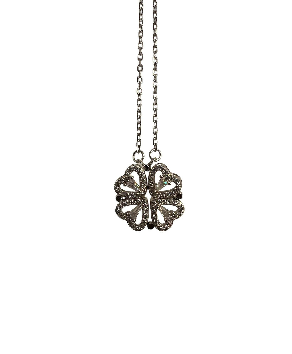 Amore Magnetico: La Collana Quadrifoglio di Cuori Intrecciati che Si Trasforma in un Filo di Cuori