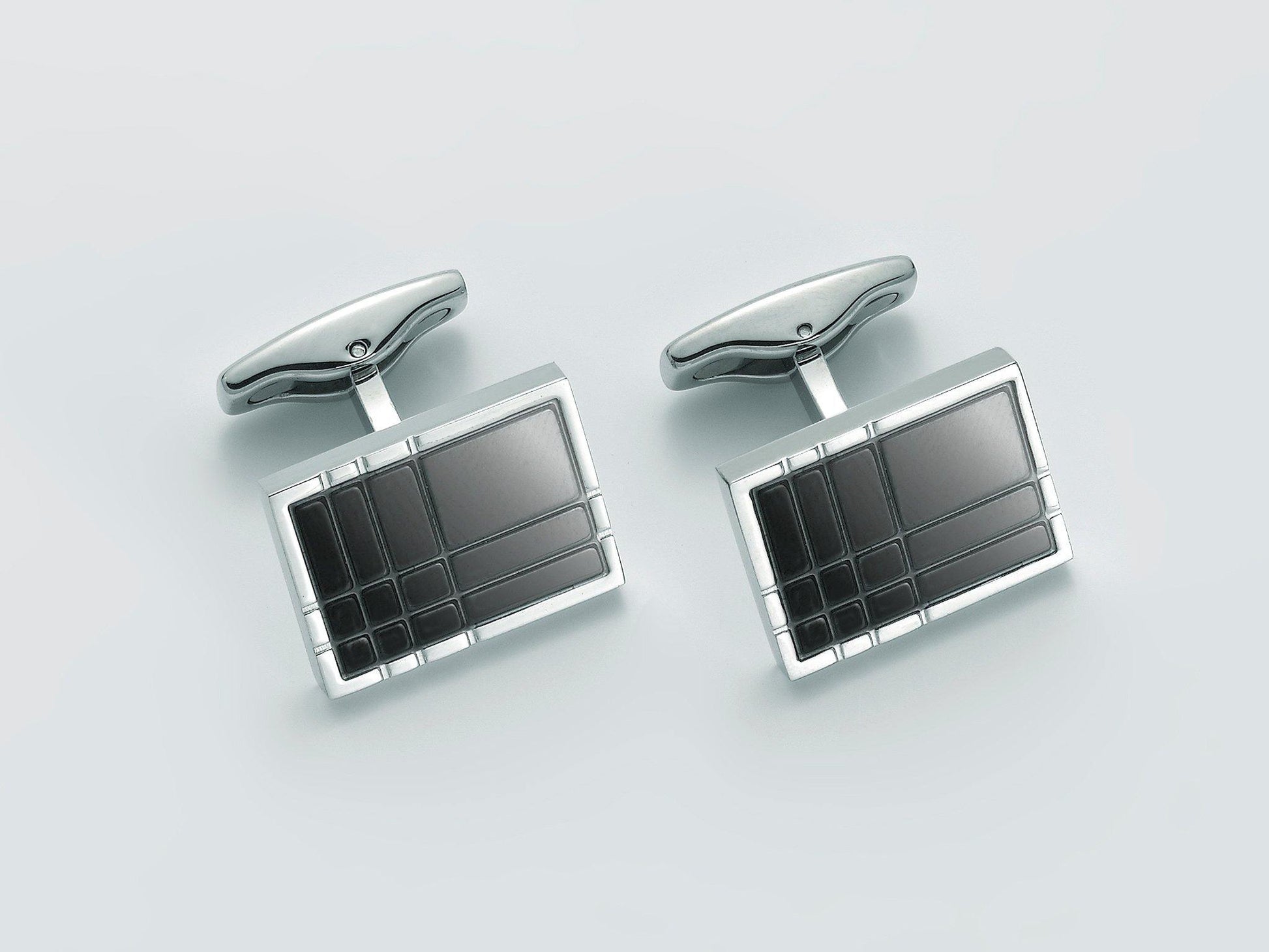 Cufflinks for men, produced by Yukiko, Classic collection, article reference KGEM039, made in steel and enriched with black enamel