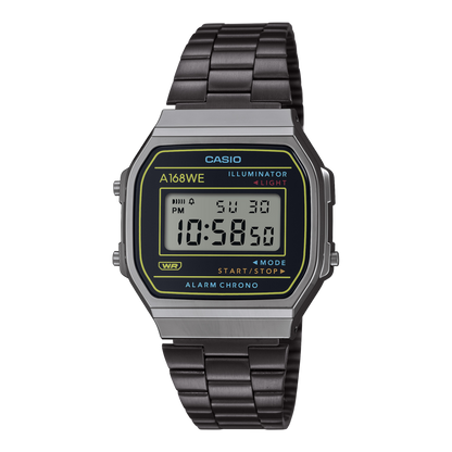 Orologio Casio Iconic A168WEHB-1A - Orologio Digitale Retro con Cinturino in Acciaio, Cronometro e Retroilluminazione