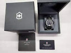 All black charm for the case (42 mm) and the bracelet in polished-satin PVD “black-ice” steel. The buckle is double safety. It mounts the three-hand movement with Ronda 705 quartz date and is equipped with blue, white and red LED lighting (battery depleted). On the sandblasted dark gray dial, with triple anti-reflection treatment on the sapphire crystal, the luminescent information and military time stand out. Waterproof up to 50 meters, it has a protected crown and a screwed caseback. Also available with a black leather strap