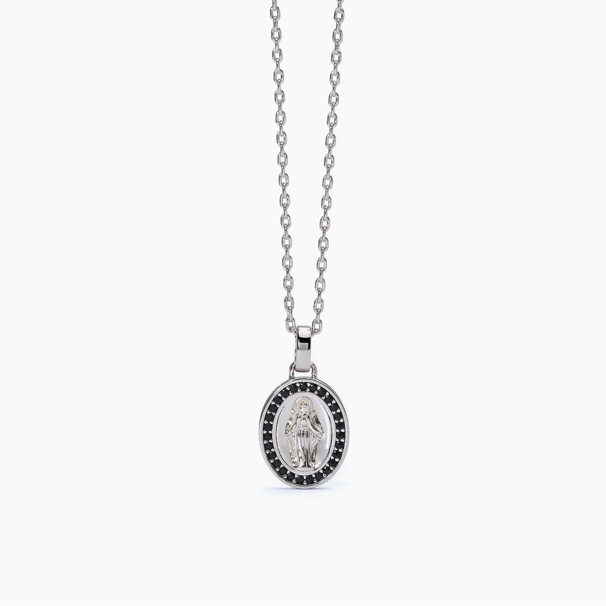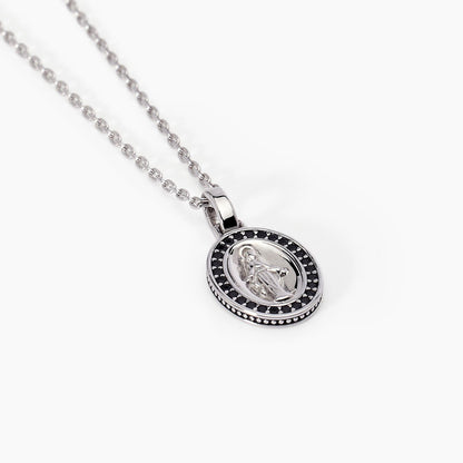 Collier en Argent avec Pendentif Madonnina et Zircons Noirs - Ligne MYSTIQUE