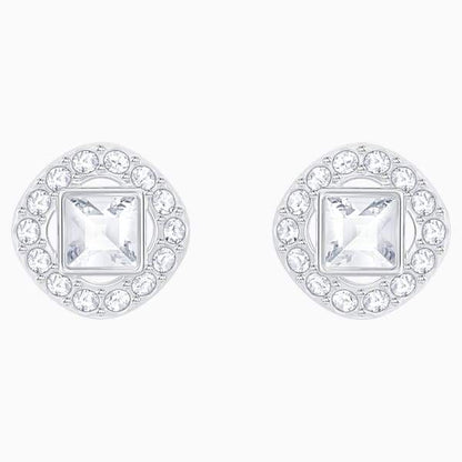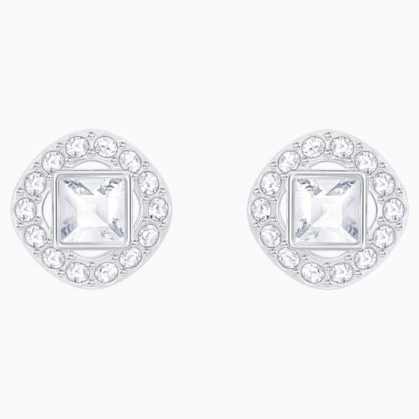 BOUCLES D'OREILLES CARRÉES ANGELIQUES, BLANCHES, MÉTAL RHODIÉ