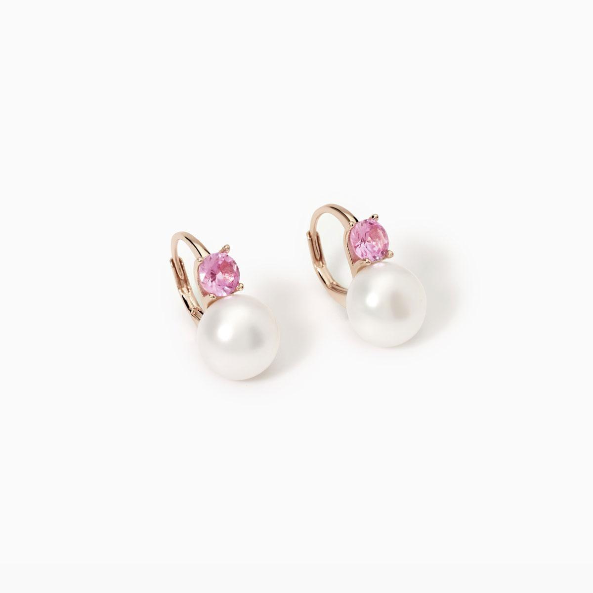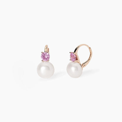 Meta Title : "Boucles d'oreilles avec perles et tourmaline synthétique - Élégance en or rose 18 carats | MABINA"