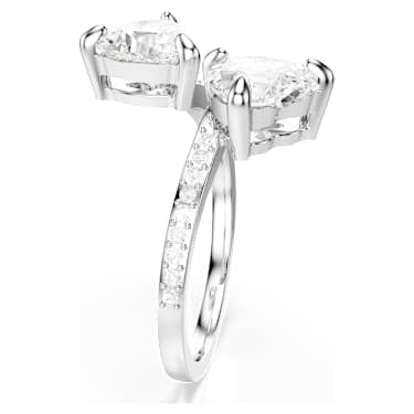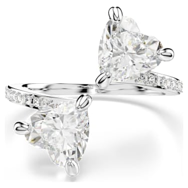 Scopri l'anello aperto Mesmera Attract, un capolavoro firmato Swarovski che celebra l'incontro di due cuori. Questo gioiello unico è caratterizzato da due pietre a forma di cuore dal taglio elegante, impreziosite da una finitura pavé scintillante. Il design, placcato in rodio, esalta il candore dei cristalli bianchi, rendendo l'anello un accessorio raffinato e senza tempo.