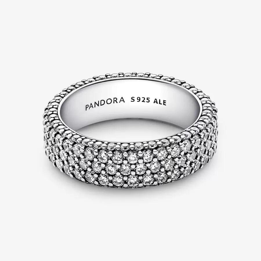 Il nuovo Anello Pavè Fascia Tripla ti farà risplendere. Questo anello è realizzato in Argento Sterling 925 e presenta tre file di pavè al centro, con una fila di pietre leggermente più piccole rivolta verso l'esterno su ciascun lato. Questo design crea un profilo quadrato leggermente arrotondato che scintilla da ogni angolazione. Puoi indossarlo da solo per un look elegante e luminoso, oppure abbinarlo ad altri anelli decorati con pavé della collezione Timeless per creare un look ancora più prezioso. Con il suo design raffinato e la sua lucentezza senza eguali, l'Anello Pavè Fascia Tripla è l'accessorio perfetto per ogni occasione.