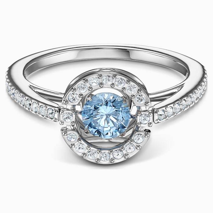 Questo scintillante anello Swarovski è un classico immancabile per i look da tutti i giorni. Combina la placcatura rodio con la tradizionale eleganza delle pietre bianche o azzurre. Questo anello accentua un outfit da lavoro unico ma anche un abito da sera elegante ed è perfetto come idea regalo per una persona speciale della tua vita.