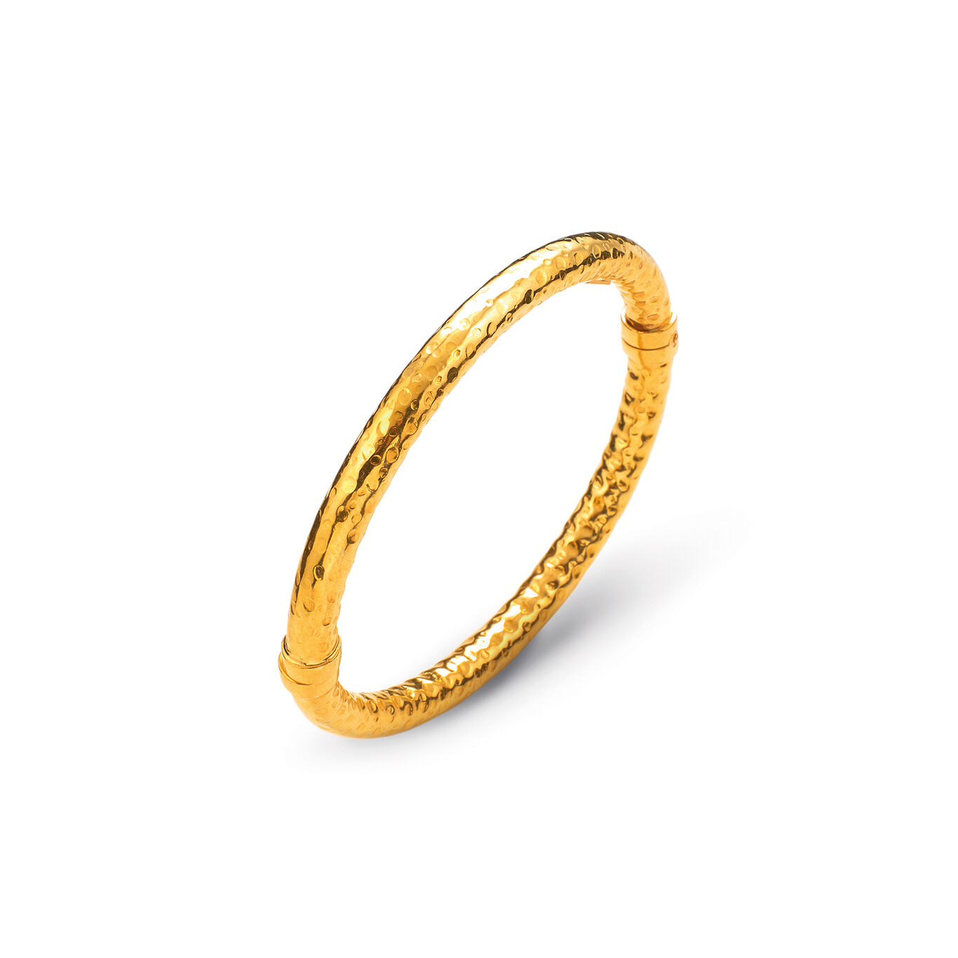 Unisci il rock e la bellezza con il Bangle Rock Piccolo di Collezione Rock. La luce è tutto, con riflessi cangianti su preziose texture d'argento e oro 18 kt. Fatto a mano in Italia, è un'aggiunta iconica a ogni outfit. Misura ovale di 5x6 cm con apertura a molla per una vestibilità perfetta. SKU: 10336.