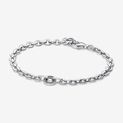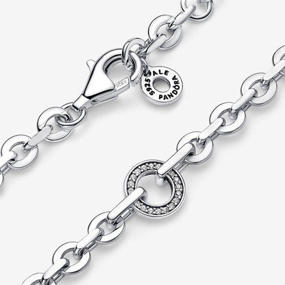 Crea la tua composizione unica con il Bracciale Cerchio Pavè, un gioiello che ti permette di esprimere il tuo stile in modo distintivo. Questo bracciale, realizzato con cura in Argento Sterling 925, è un capolavoro di design. La catena di maglie è un intrigante mix di forme: ovali e rettangolari, piatte da un lato e rotonde dall'altro. Questa combinazione crea un aspetto dinamico e affascinante.