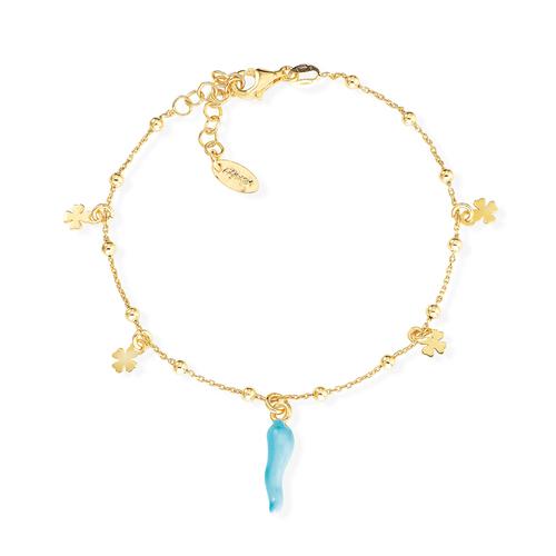 Bracciale in Bracciale in argento e corno in smalto tiffany - Dorato - Lungh. 16+3cm - Articolo corredato da shopper, scatola e garanzia