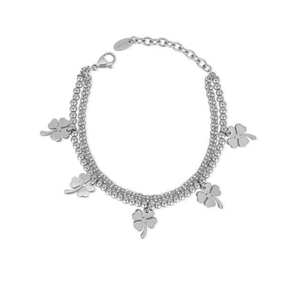 BRACCIALE DA DONNA IN ACCIAIO 316L QUADRIFOGLI CM 19, TEMA FORTUNA, CHIUSURA REGOLABILE.