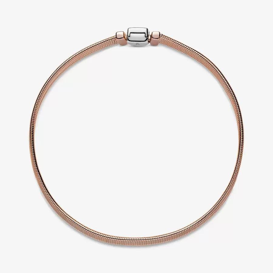 Il bracciale è composto da quattro fili singoli in maglia snake, rifiniti a mano e placcati in oro rosa 14k. La chiusura del bracciale è in argento sterling 925, che crea uno splendido contrasto con le sfumature calde dell'oro rosa.