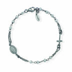 Bracciale Rosario e Cristalli fumè Bracciale in Argento 925 Rutenio - Lunghezza 18+2cm - Articolo corredato da shopper, scatola e garanzia