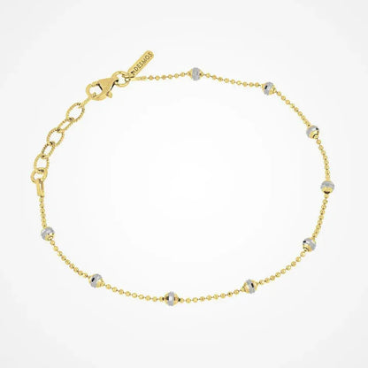 Descrizione: Il bracciale Shine di DESMOS è un gioiello elegante e raffinato, realizzato in argento 925 bi colore, bianco e giallo. La catena è composta da sfere diamantate che conferiscono una forte luminosità e brillantezza, rendendo questo bracciale un accessorio di grande impatto visivo.