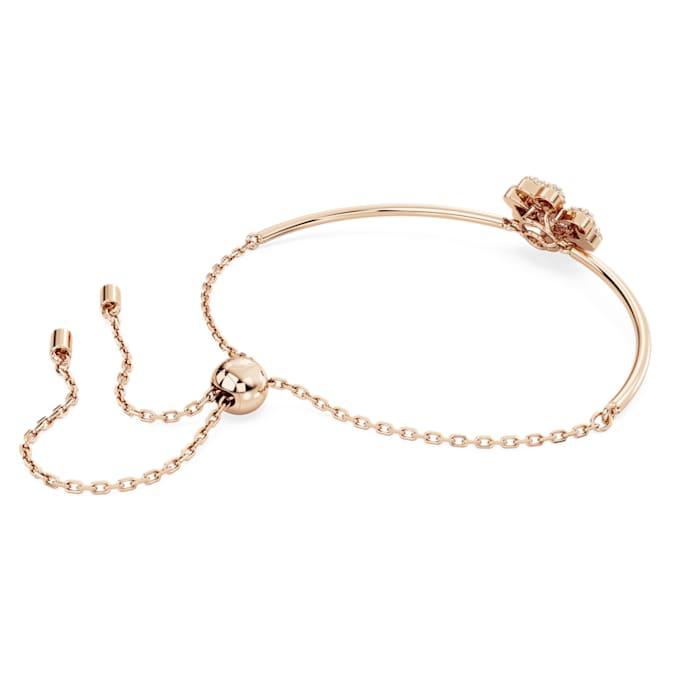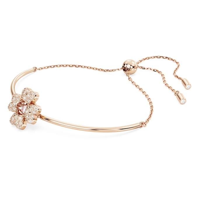 Questo splendido bracciale della famiglia Idyllia aggiungerà un tocco di lusso a qualsiasi look. Disposto su una catena con chiusura regolabile, il design placcato color oro rosa presenta un motivo portafortuna a quadrifoglio, realizzato con uno Swarovski Zirconia centrale rosa e quattro foglie decorate da un pavé di cristalli Cry. Indossalo con un paio di orecchini a quadrifoglio Idyllia per un look ispirato alla natura.