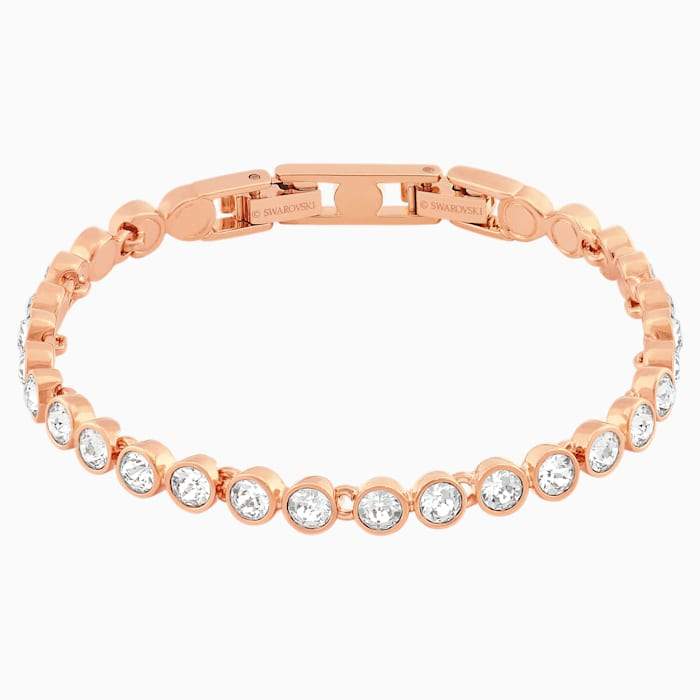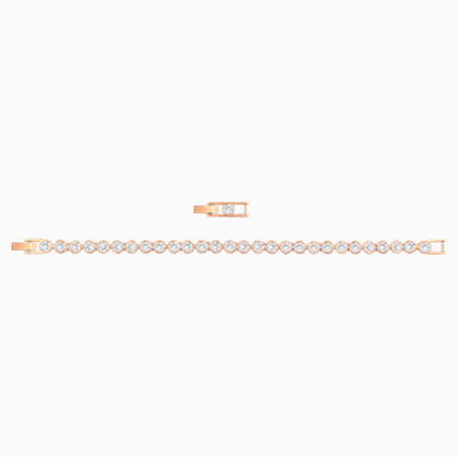 L'apprezzatissimo braccialetto Tennis Swarovski è ora declinato in un'attuale versione placcata oro rosa! Il filo di Clear Crystal montati a castone connoterà con il suo stile discreto e raffinato ogni abito. Il gioiello monta un fermaglio ripiegabile ed è abbinato ad un elemento-prolunga.