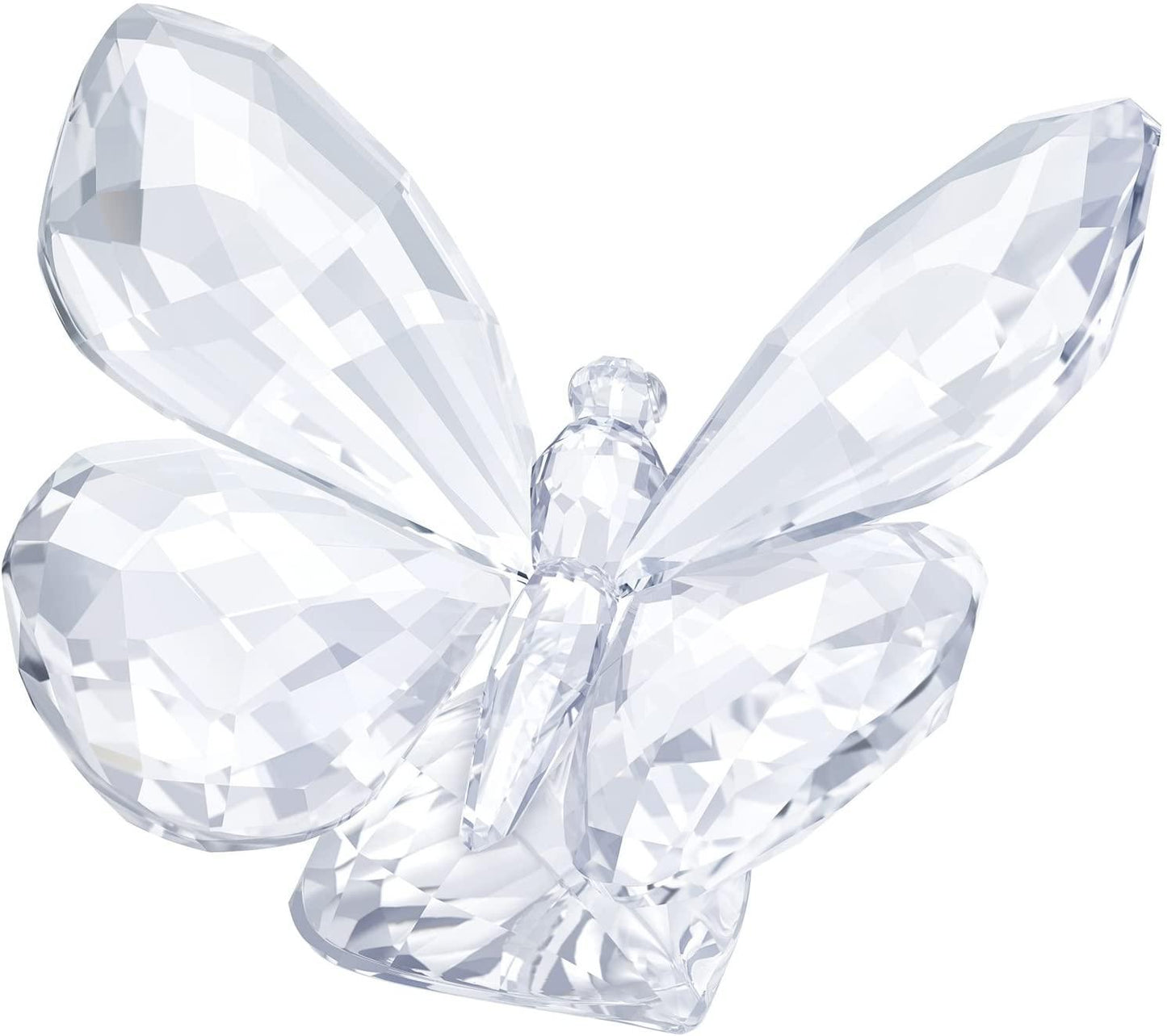 Farfalla su foglia con ali aperte in cristallo trasparente Swarovski