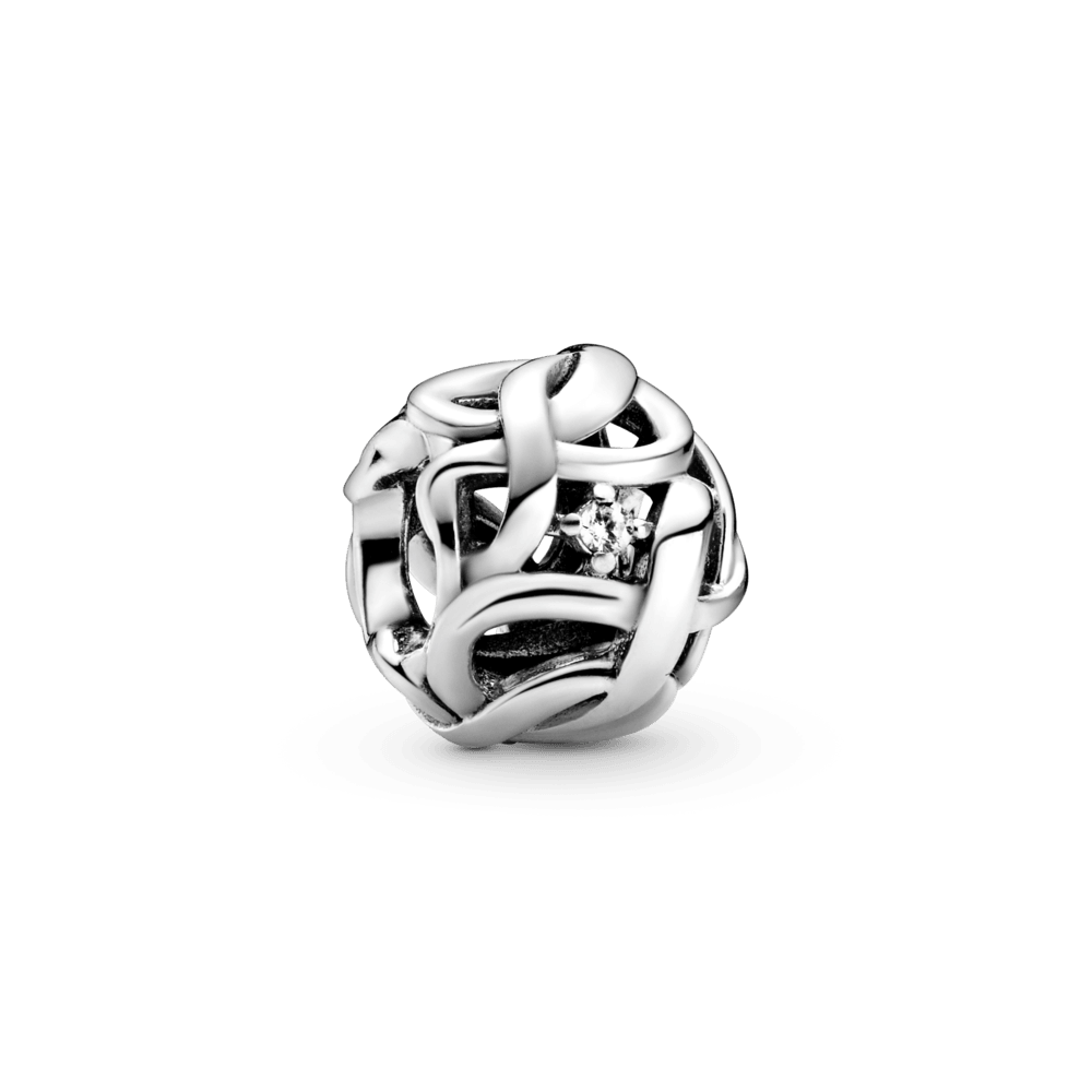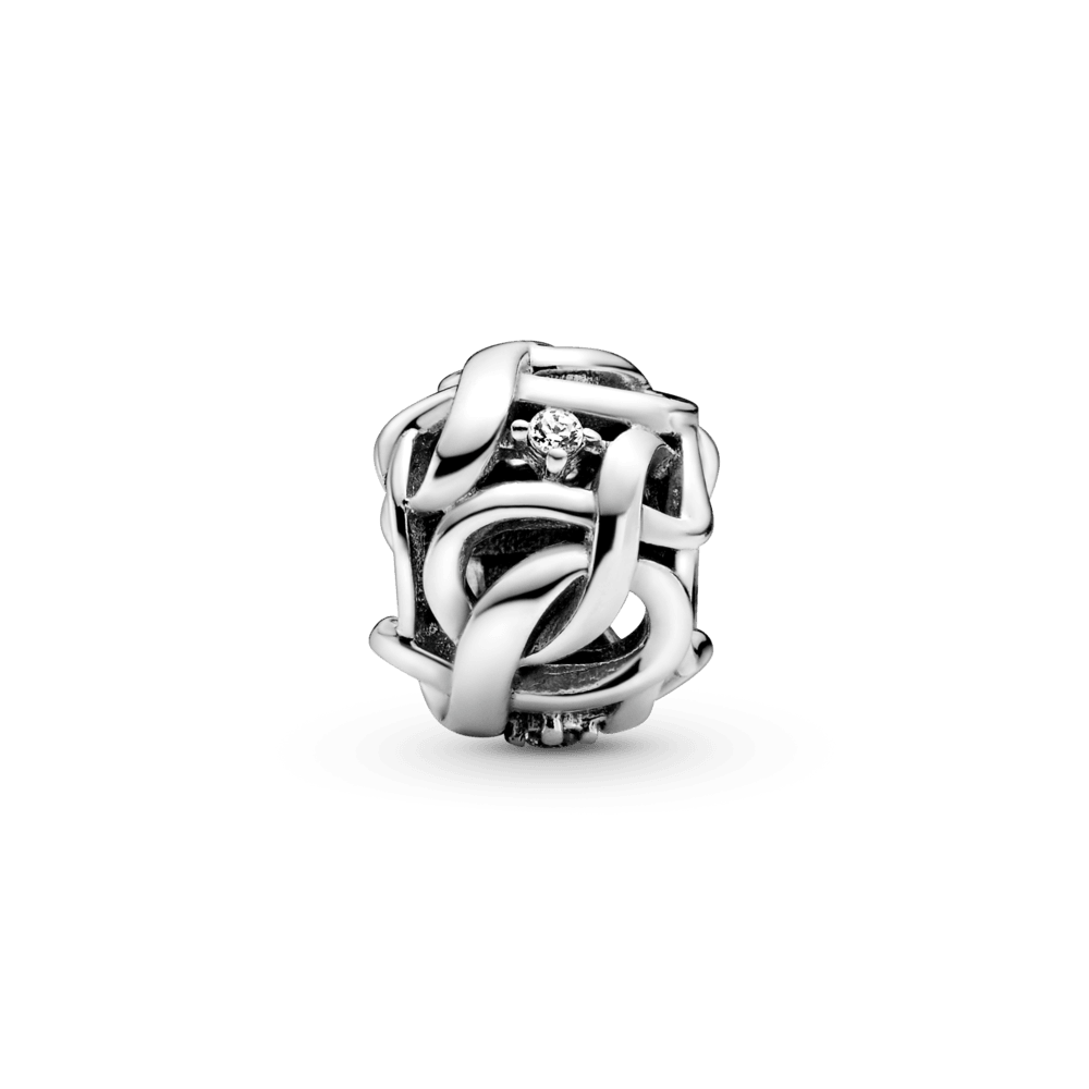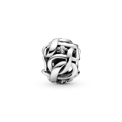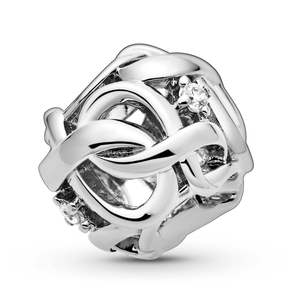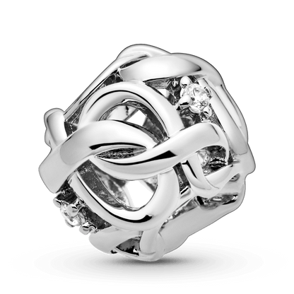 L'amore eterno è rappresentato dal charm Infinito, che incarna il legame senza fine che ci unisce. Realizzato in Argento Sterling 925, questo charm presenta un intreccio openwork di simboli dell'infinito con pietre di zirconia cubica che sembrano fluttuare tra di essi.