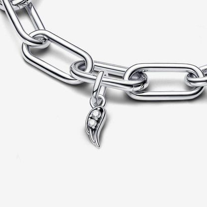 Dai vita al tuo stile unico con il Charm Mini Pendente Angel Wing di Pandora ME. Questo prezioso gioiello è realizzato in Argento Sterling 925 e presenta un'ala d'angelo con un lato decorato da scintillanti pietre e linee in rilievo, mentre l'altro lato è ornato da due file diagonali di micros ere ondulate. Indossalo come simbolo di gioia e serenità. Questo charm è perfettamente compatibile con i gioielli delle collezioni Pandora ME e Moments