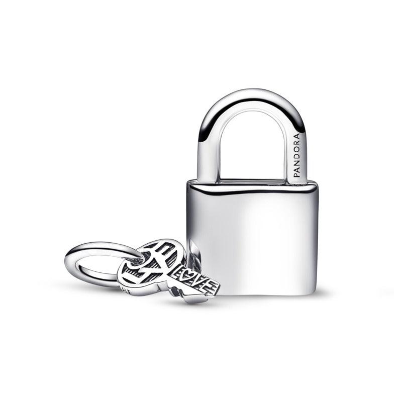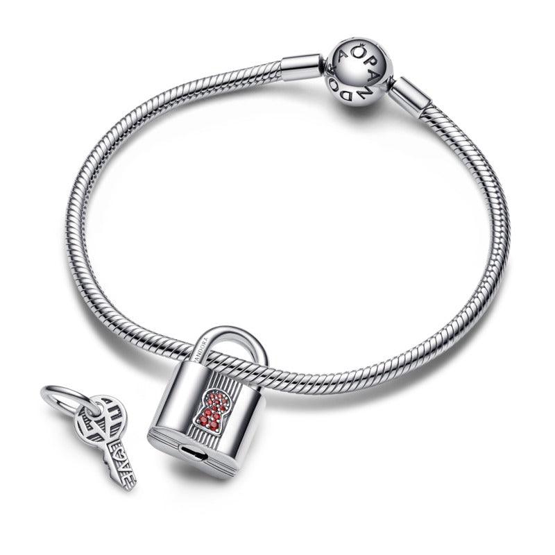 Charm Pendente Lucchetto e Chiave dell’Amore con Pietre Rosse