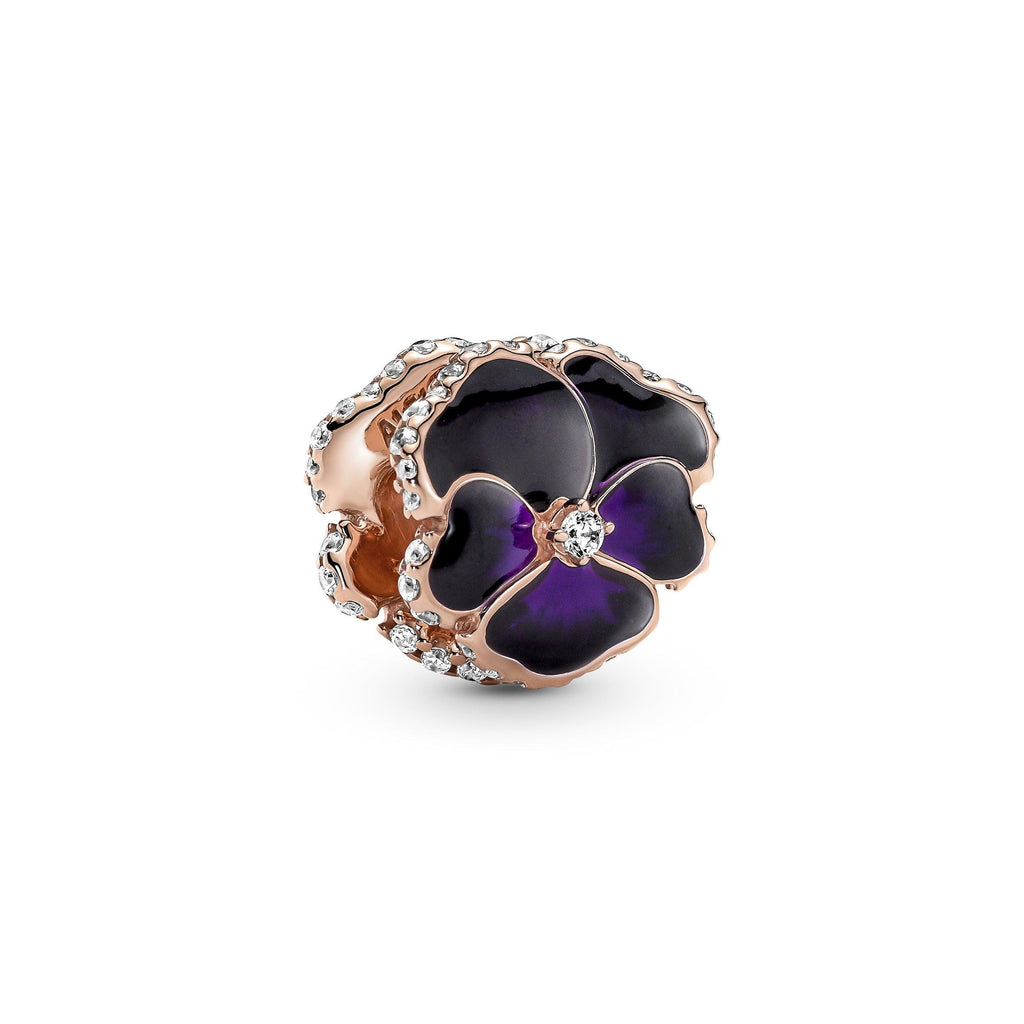 Dona un tocco di colore alla tua primavera con il nostro charm Viola del pensiero dal colore viola intenso. Ogni fiore è placcato in oro rosa 14k, decorato con pietre di zirconia cubica incolori scintillanti e rifinito con smalto applicato a mano, il che lo rende assolutamente unico. La Viola del pensiero, simbolo dell'amore in tutte le sue forme, è l'ultima novità nel nostro giardino di charm. Indossa questo charm per ricordare tutte le persone care della tua vita e abbinalo ad altri gioielli della nostra collezione ispirata alle viole del pensiero per un look coordinato e alla moda.