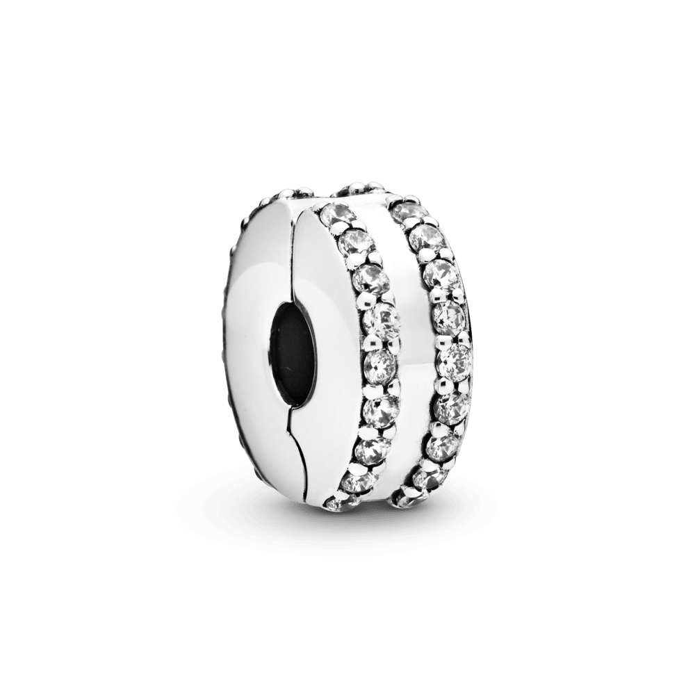 Questa clip in Argento Sterling 925 con pietre di zirconia cubica è una scelta elegante e contemporanea per arricchire la tua collezione di gioielli. La clip, rifinita a mano e parte della collezione Pandora Timeless, ha un motivo esclusivo creato dalle pietre di zirconia cubica su entrambi i lati, aggiungendo un tocco di raffinatezza a qualsiasi combinazione di gioielli. La clip è anche dotata di inserti in silicone che ne garantiscono la sicurezza e la durata, e può essere facilmente inserita in qualsiasi punto del braccialetto Pandora Moments preferito, tranne sui divisori in rilievo. Scegli questa elegante clip per aggiungere un tocco di contemporaneità e raffinatezza alla tua collezione di charm.
