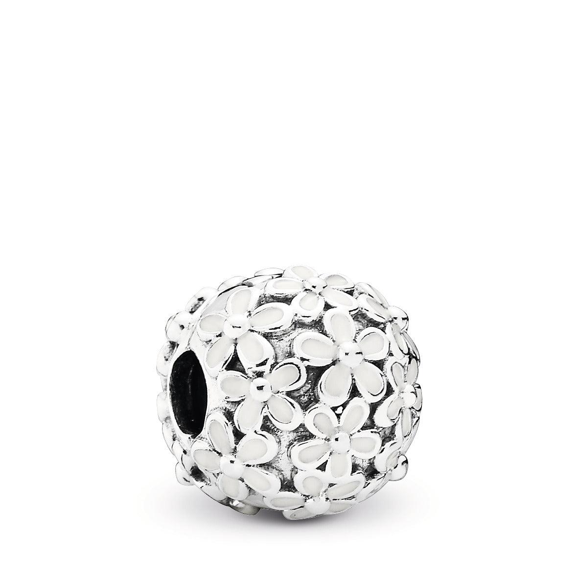 Questa clip per gioielli componibili è il complemento perfetto per un look primaverile e fresco. Il delicato smalto bianco sulla superficie dell'argento Sterling 925 crea un'immagine realistica di un prato fiorito, con margherite che si stagliano contro lo sfondo.