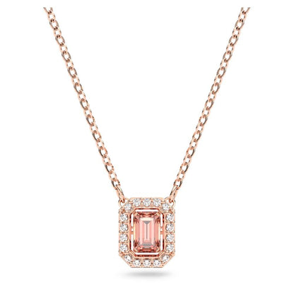 Ingegneria dinamica ed eleganza senza tempo si incontrano in questo bellissimo ciondolo. Un vero pezzo forte per qualsiasi look, la sua pietra rosa a taglio ottagonale è incorniciata da cristalli più piccoli e sospesa da una delicata catena placcata color oro rosa. Indossa il tuo per dare un tocco di femminilità a ensemble sia casual che più formali. Questo ciondolo fa parte della famiglia Millenia, disegnata dal Direttore Creativo Giovanna Engelbert per Collection II.
