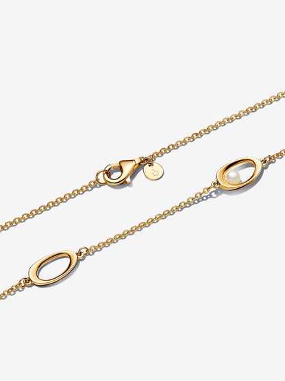Collana Ovali Linea Sinuosa e Perla D'Acqua Dolce Coltivata Placcatura in Oro 14k
