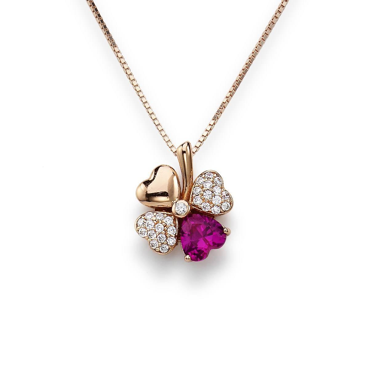 COLLANA QUADRICUORE ROSE' E ZIRCONI BIANCHI E RUBINO