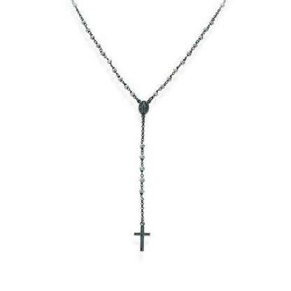 Rosario classico e Cristalli fumè Argento 925 Rutenio - Lunghezza 50+2cm - Articolo corredato da shopper, scatola e garanzia