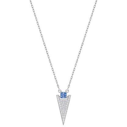 Collana Swarovski donna 5249351 con cristalli collezione Funk. Collana dalla lunghezza di 40 cm, ciondolo a triangolo con pavè di Crystal Clear fissato da un cristallo azzurro dal taglio quadrato. Consegnata con scatola originale e garanzia ufficiale.