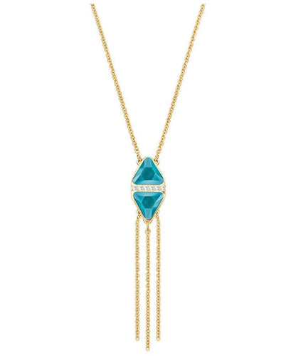 Collana Di Swarovski Da Donna Della Collezione Labyrinth. Collana Labyrinth, Multicolore, Con Placcatura Oro. Gioiello Caratterizzato Da Cristalli Turchesi Triangolari, Pavé E Nappe Placcate Oro. Lunghezza: 42 Cm, Dimensione Pendente: 1X4,5 Cm. La Referenza È 5381219
