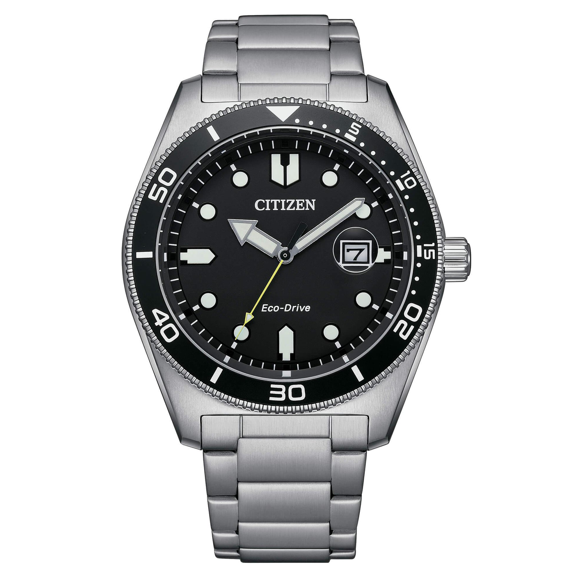 Eco Drive a carica luce con riserva di carica di 240 giorni.