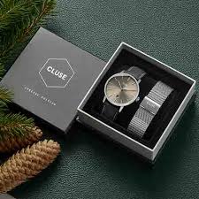 Una special edition in confezione regalo dal design senza tempo che include un orologio Aravis con datario in basso al centro del quadrante. I dettagli in grigio e nero sono sottolineati dal cinturino in pelle nera che aggiunge un tocco di contemporaneità all'orologio. Nel cofanetto regalo anche un elegante cinturino a maglia metallica color argento. Perfetto per cambiare il tuo look in un attimo. Il tutto è presentato in un esclusivo cofanetto regalo di colore grigio con logo CLUSE Special Edition.
