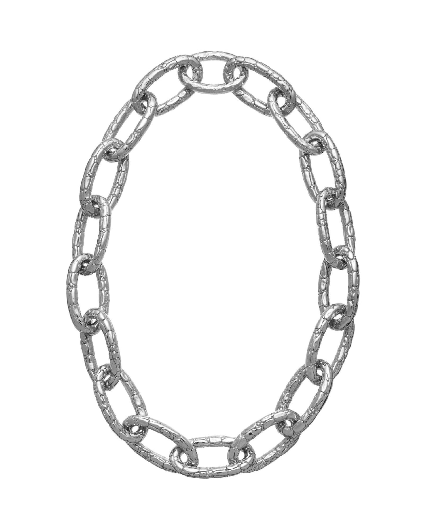 Collana a catena della collezione Giovanni Raspini Animalier da donna. Colore: argento. Collana Crocodile piccola in argento 925‰ realizzata con texture animalier per raccontare la bellezza eterna della natura selvaggia. Lunghezza: 52 cm. Chiusura a scomparsa. Peso: 67 gr. I gioielli Giovanni Raspini sono interamente realizzati a mano in Italia.