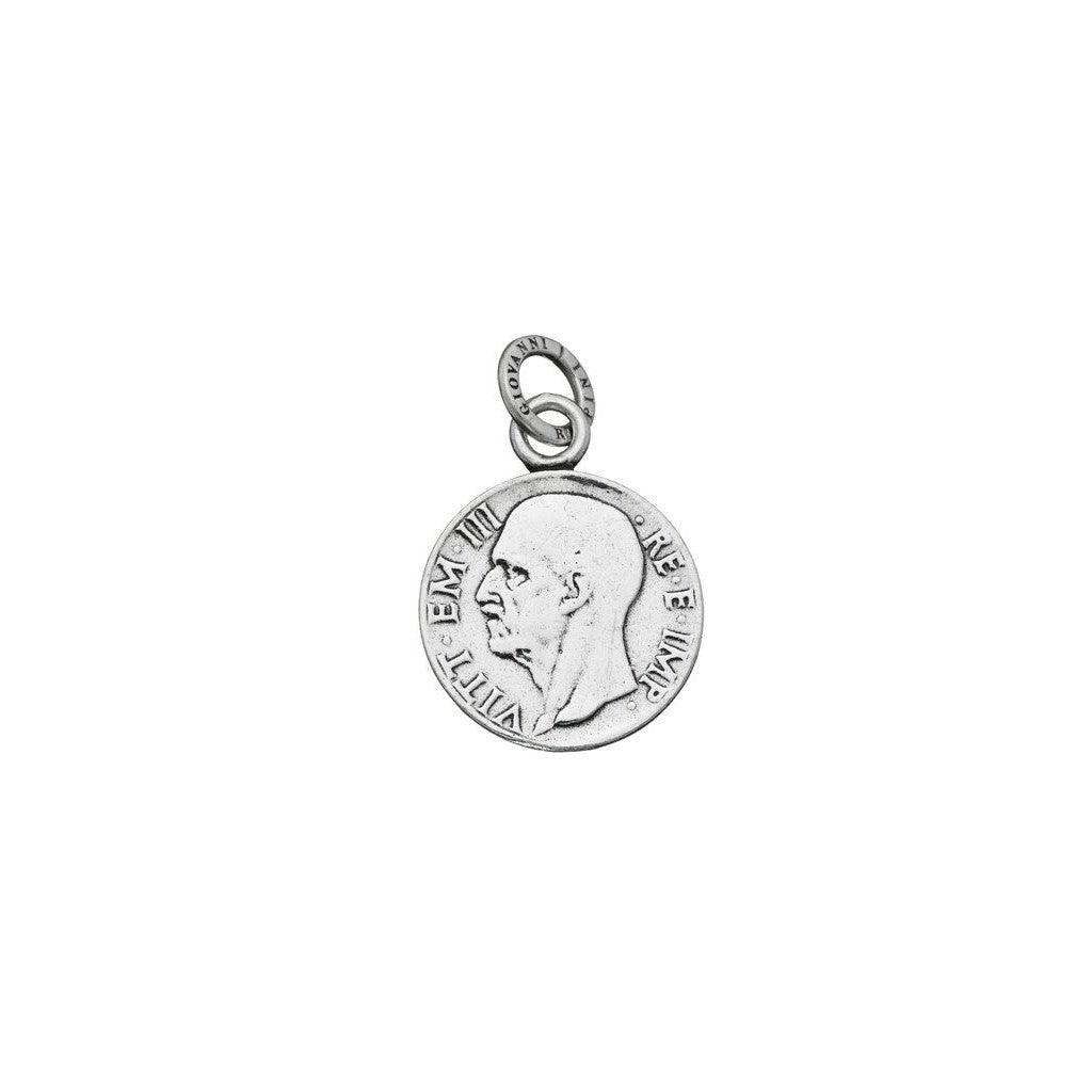 Il CHARM MONETA VITTORIO EMANUELE è un gioiello di squisita fattura, che incarna la raffinatezza e la storia italiana. Realizzato interamente a mano in Italia, questo charm in Argento 925 è arricchito da una maglina con il logo, simbolo di autenticità e qualità artigianale. Rappresentando una moneta con l'effigie di Vittorio Emanuele, questo pezzo unisce valore storico e bellezza, rendendolo un accessorio unico per gli amanti della storia e della numismatica.