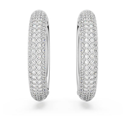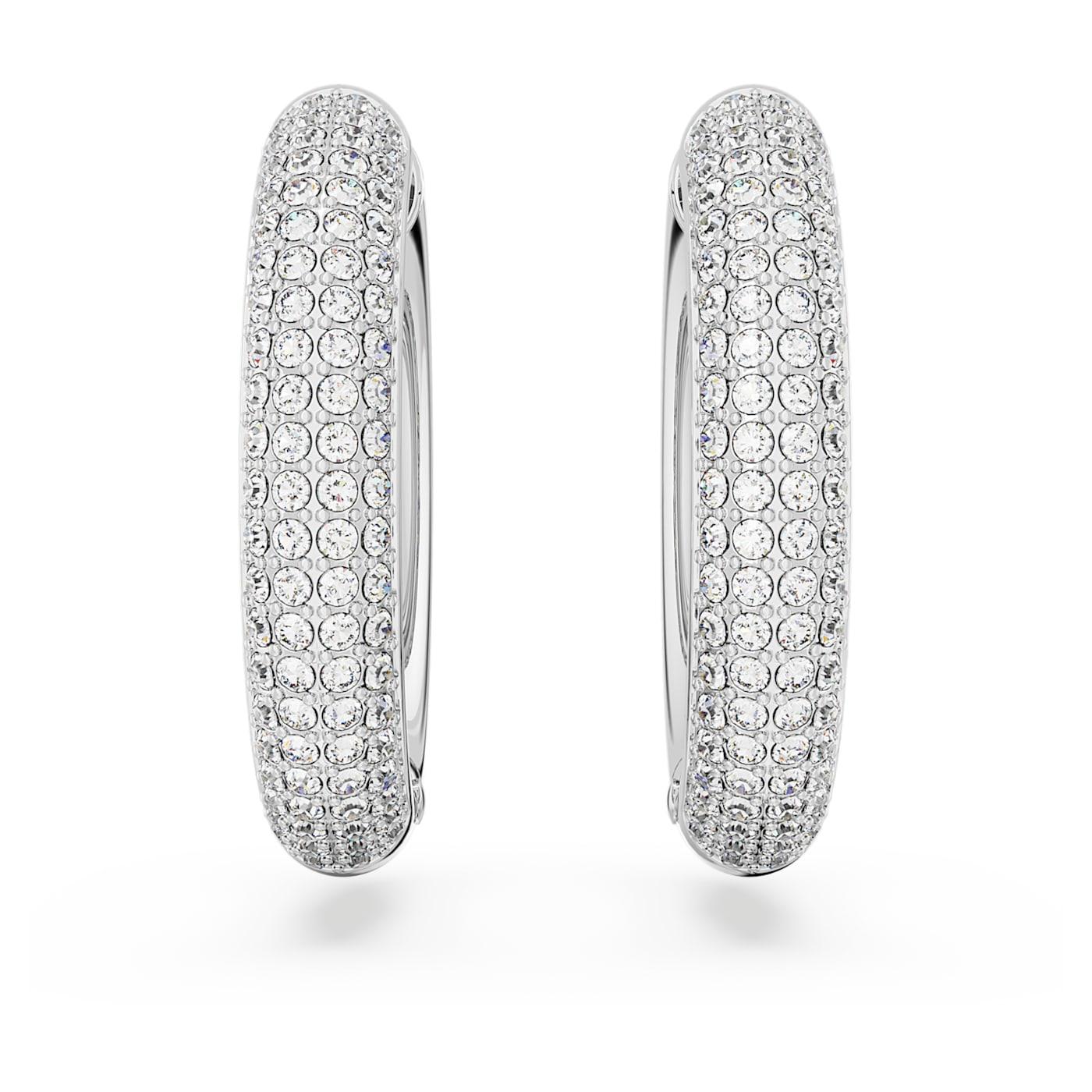 Questi orecchini stile industrial-chic sono pensati per un look audace. Mettendo in risalto la nostra iconica tecnica pavé, ogni anello circolare placcato rodio è impreziosito da scintillanti cristalli trasparenti all-over. Abbina questi orecchini con altri gioielli della famiglia Dextera e massimizza il tuo audace stile metallico.