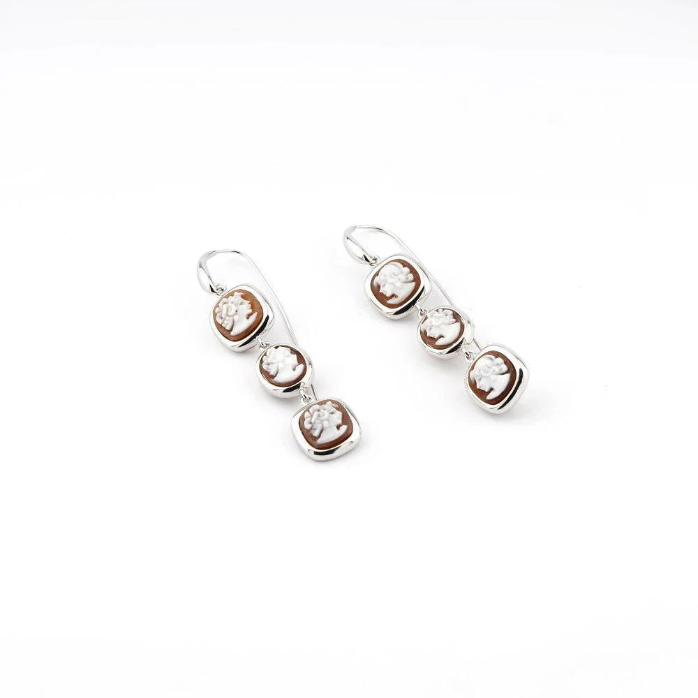con cameo 'volto' inciso a mano su conchiglia sardonica e argento 925. Dimensione del cammeo 10-11 mm