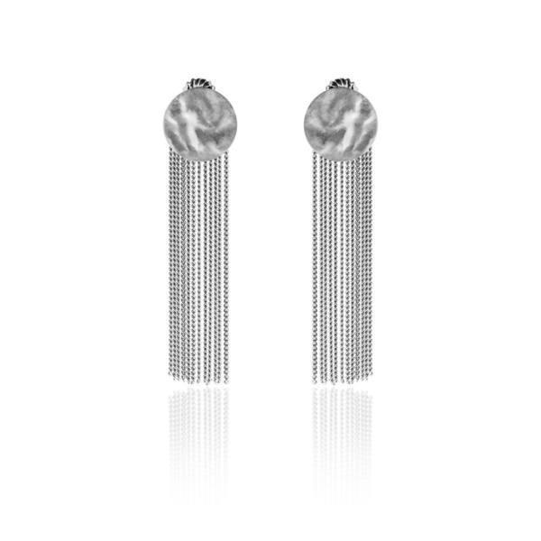 Orecchini Donna Eclat 7082 Collezione Flashes in argento 925 rodiato composti da cerchio a lobo piatto, satinato e leggermente martellato da cui scendono frangette sottili ritorte. Chiusura a farfallina.