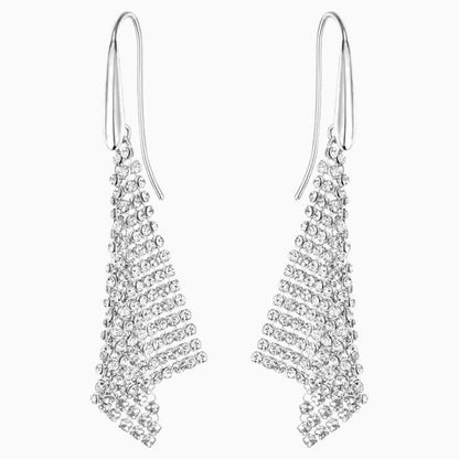 Bagliori argentati vi illumineranno il viso quando indosserete questi orecchini placcati rodio, interpretati da un triangolo in Clear Crystal Mesh. Il profilo marcato eppure femminile aggiungerà un tocco raffinato e romantico alle vostre mise.