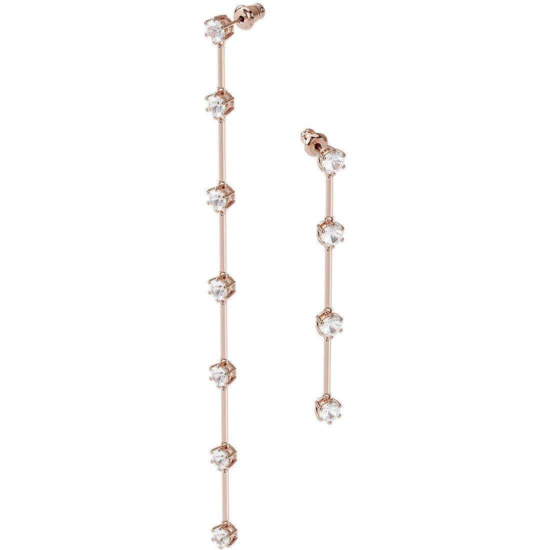 Ispirato alle meraviglie del cosmo, questo paio di orecchini asimmetrici sono formati da un’elegante linea di metallo placcato oro rosa tempestato di pietre taglio Brilliant montate a griffe. Reinterpretazione moderna del solitario, questi orecchini esemplificano la contemporaneità del classico; puoi indossarli di giorno, di sera, per valorizzare qualsiasi look con un tocco di polvere di stelle. Parte della famiglia Constella, questi orecchini sono firmati dal Direttore Creativo Giovanna Engelbert per la Collection I.