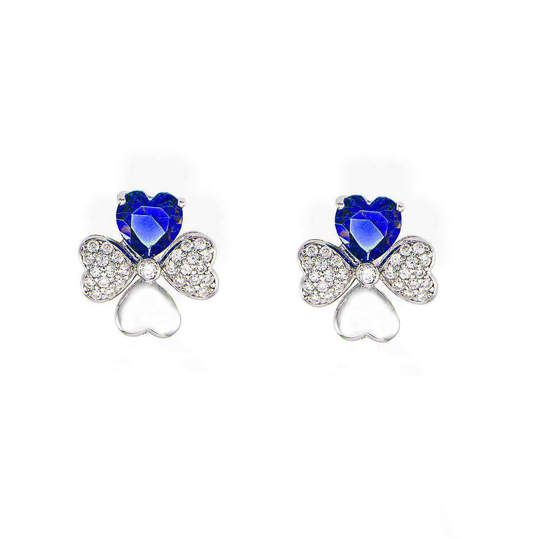 ORECCHINI QUADRICUORE RODIO E ZERCONI BIANCHI E BLU