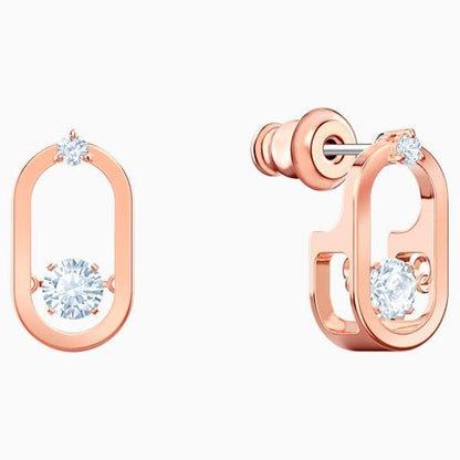 Viziati o fai un regalo a una persona cara con questo paio di orecchini a buco con il nostro nuovo concetto di “dancing crystal”. Il design presenta scintillanti pietre rotonde che fluttuano all’interno di una struttura in metallo placcato oro rosa. Un’aggiunta irresistibile al tuo portagioie, ideale per sottolineare le tue mise da giorno con una brillantezza giocosa.