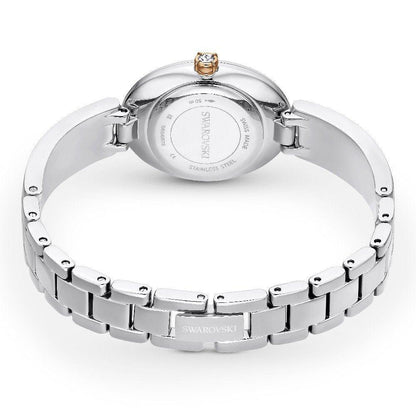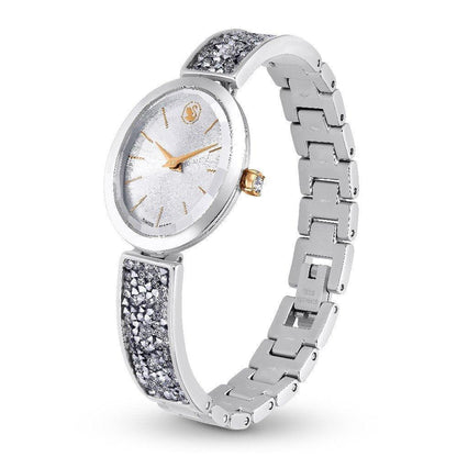 Impreziosisci il tuo stile con questo affascinante orologio Crystal Rock Oval. L’elegante cassa ovale misura 26 x 29 mm ed è realizzata in acciaio inossidabile con dettagli in una finitura color oro rosa. Dietro il vetro sfaccettato, un quadrante bianco con motivo sunray presenta il cigno Swarovski posizionato all’altezza delle ore 12, mentre una singola pietra è incastonata nella corona dell’orologio. La cassa è montata su un bracciale regolabile in metallo decorato con circa 232 Ultra Fine Crystal Rocks, per uno squisito effetto scintillante. Resistente all’acqua fino a 50 m, questo orologio Swiss made realizzato con una sua intrinseca raffinatezza che si adatterà alla perfezione ad ogni tuo look da giorno o da sera, ti garantirà puntualità in ogni occasione.