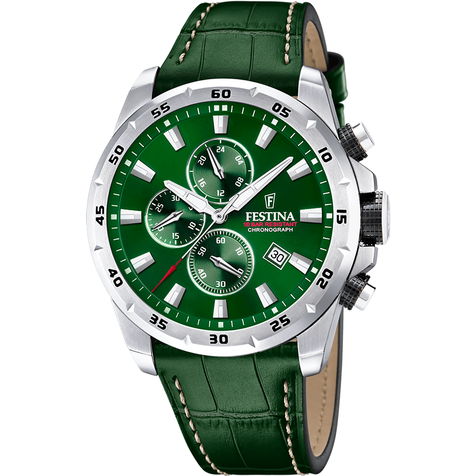 L'Orologio Festina F20692/3 è un elegante accessorio maschile che coniuga raffinatezza e praticità. La cassa, realizzata in robusto acciaio inossidabile 316L, ospita un quadrante di colore verde, coperto da un cristallo minerale resistente. Questo orologio fa parte di una collezione che spicca per il design distintivo e l'impegno nella ricerca tecnologica dei materiali, assicurando un ottimo rapporto qualità/prezzo.