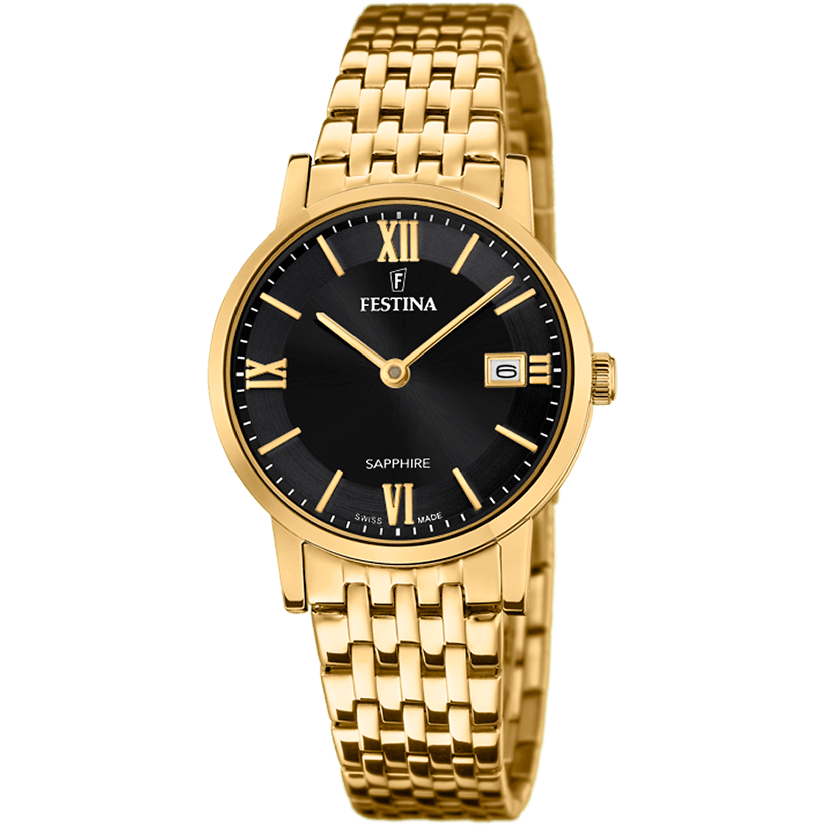 OROLOGIO FESTINA SWISS MADE NERO CINTURINO IN ACCIAIO, DONNA