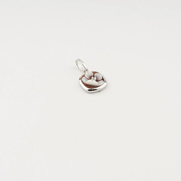 con cameo 'fiore' inciso a mano su conchiglia sardonica e argento 925. Dimensione del cammeo 10 mm.