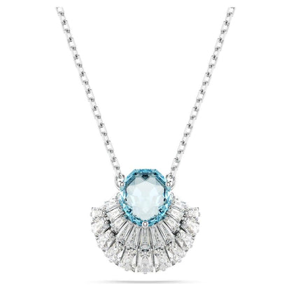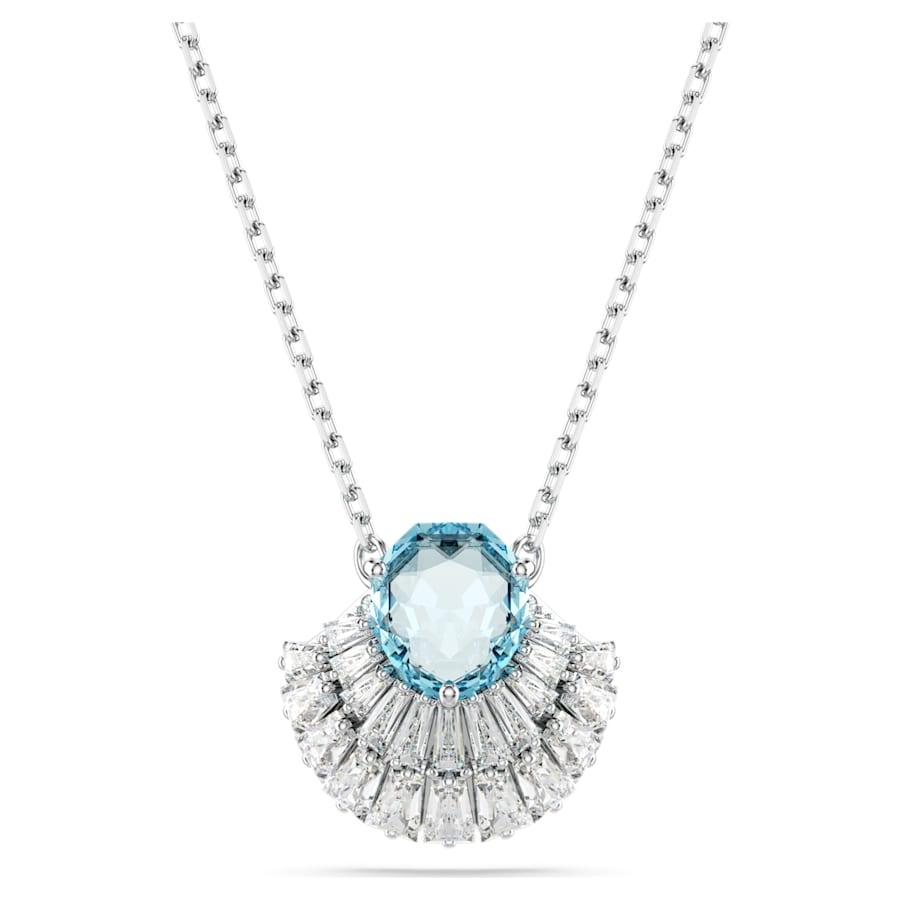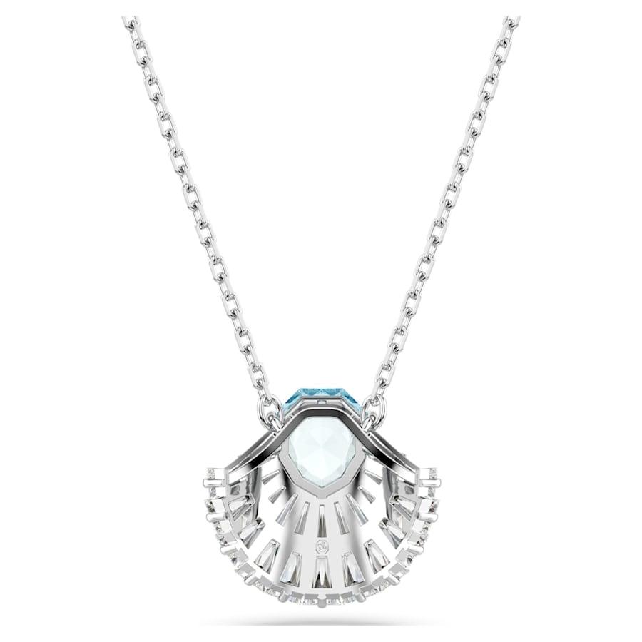 Questo pendente d’ispirazione marina è un gioioso omaggio al colore e allo spirito dell’oceano. Indossato su un’elegante catena, il design placcato rodio presenta un motivo centrale a forma di conchiglia, impreziosito da una serie di Swarovski Zirconia trasparenti e da un cristallo centrale blu brillante. Una creazione serena e rilassante per valorizzare il tuo stile quotidiano.